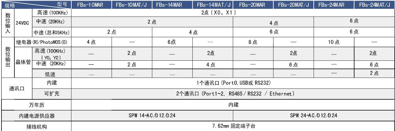 (T/J機型具2點100KHz) 內(nèi)置1個RS232/USB通訊口(最多可擴至3個)