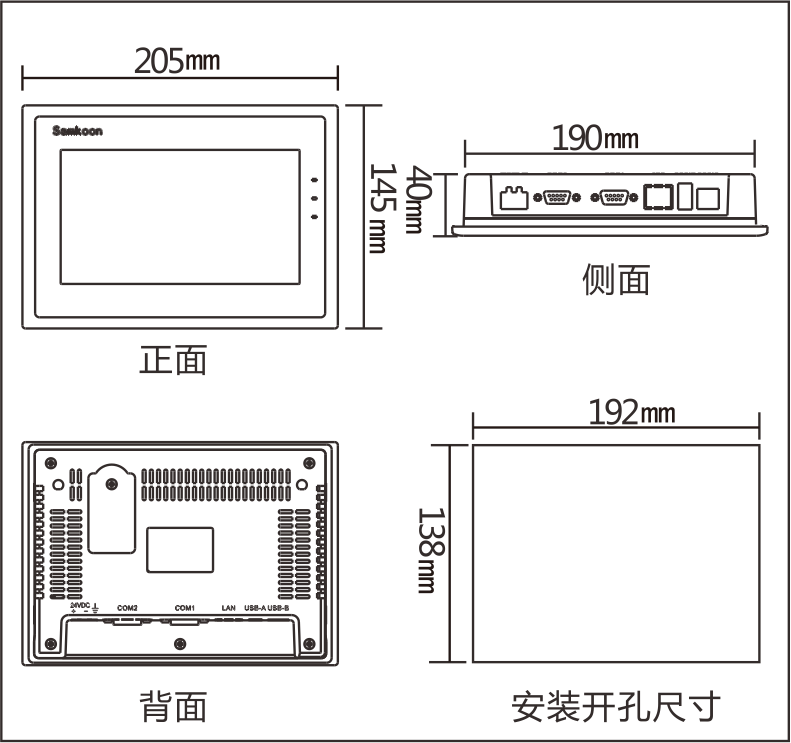 內置單COM口集成RS232/422/485通訊方式,支持USB下載